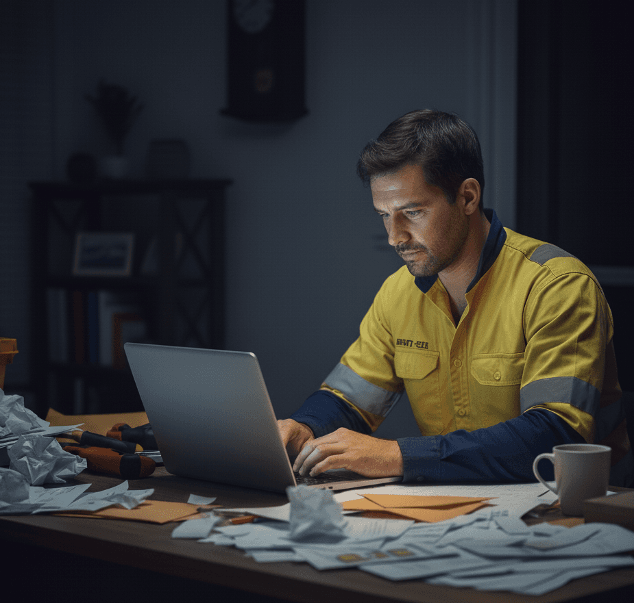Most tradies finish a long week, only to spend nights or weekends sorting receipts, emailing invoices, and catching up on Xero.